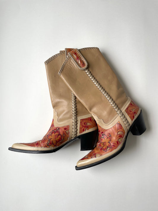Blumarine SS 2002 iconic beige hand painted western boots (EU 40/ US 9)