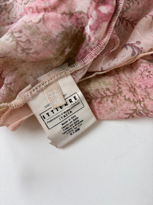 Galliano 2000s pink silk ruffle print top M