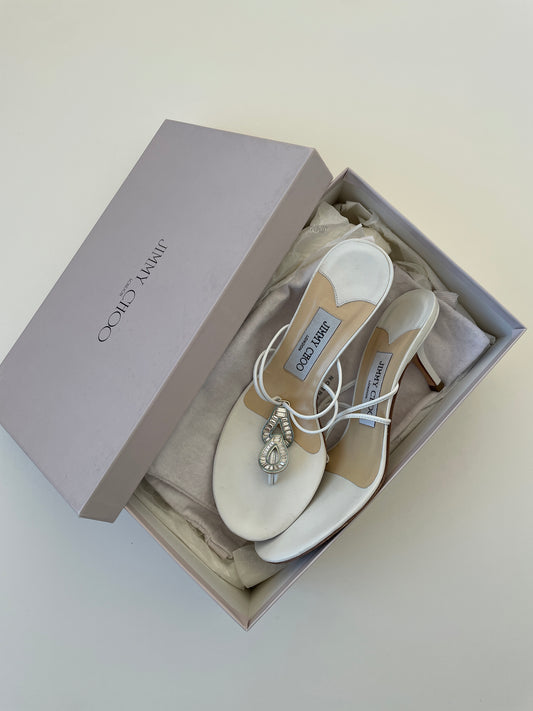 Jimmy Choo 2000s white rhinestone thong kitten heels (EU 37 / US 6.5)