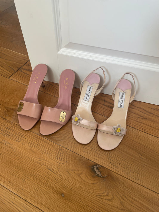 Jimmy Choo pink satin daisy floral heels (EU 38 / US 7,5)