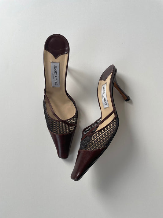 Jimmy Choo dark brown mesh strappy mules (EU 39 / US 8)