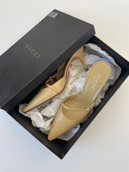 Gucci by Tom Ford S/S 1998 cream white sling back kitten heels (EU 39 / US 8.5)