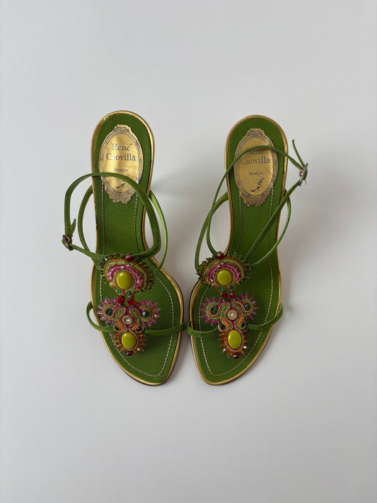 Rene Caovilla 2000s green jewelry sandal heels UNWORN (EU 37 / US 6.5)