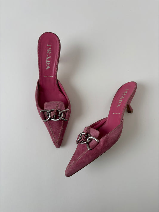 Prada 2000s pink suede kitten heel mules (EU 39,5 / US 9)