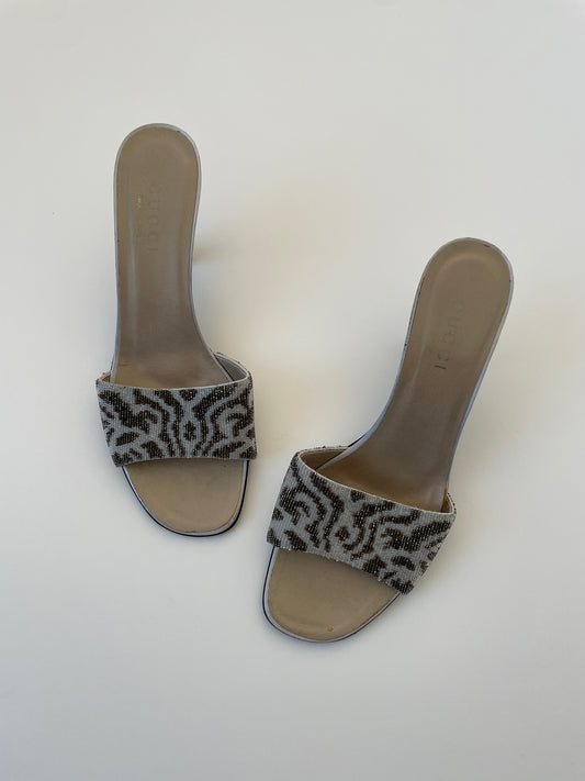 Gucci by Tom Ford beaded animal metallic sandal heels (EU 38,5/ US 8)