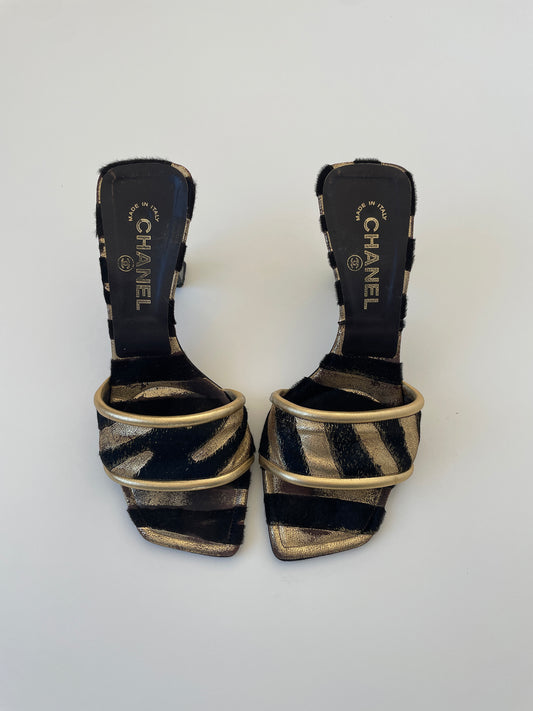 Chanel 2000s by Karl Lagerfeld golden animal mirror block heel sandals (EU 38 / US 7.5)