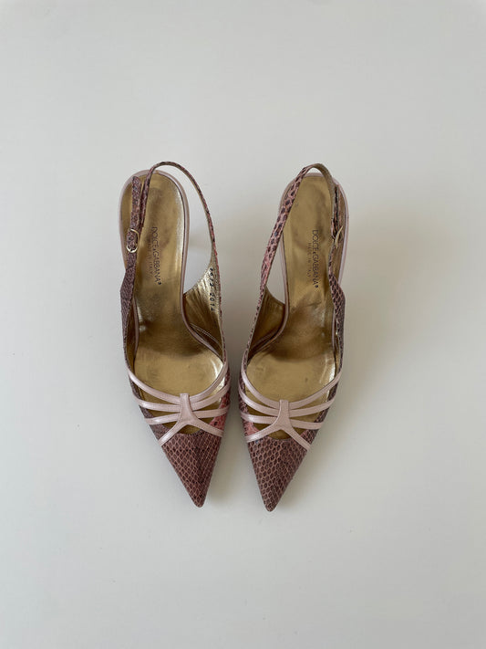 Dolce & Gabbana 2000s rose silk python slingbacks (EU 38 / US 7.5)