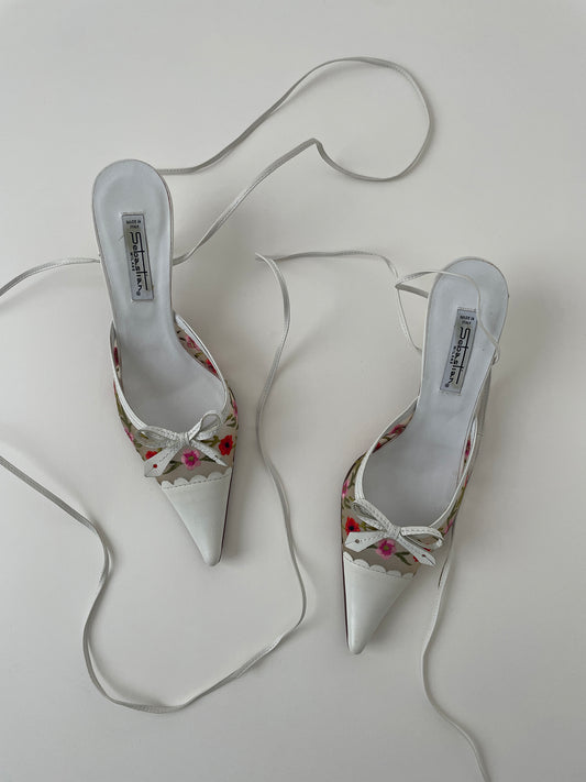 Italian vintage white flower mesh kitten heels UNWORN (EU 36,5/ US 6)