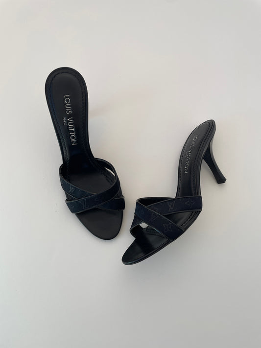Louis Vuitton 2000s black monogram satin sandals (EU 37,5 / US 7)