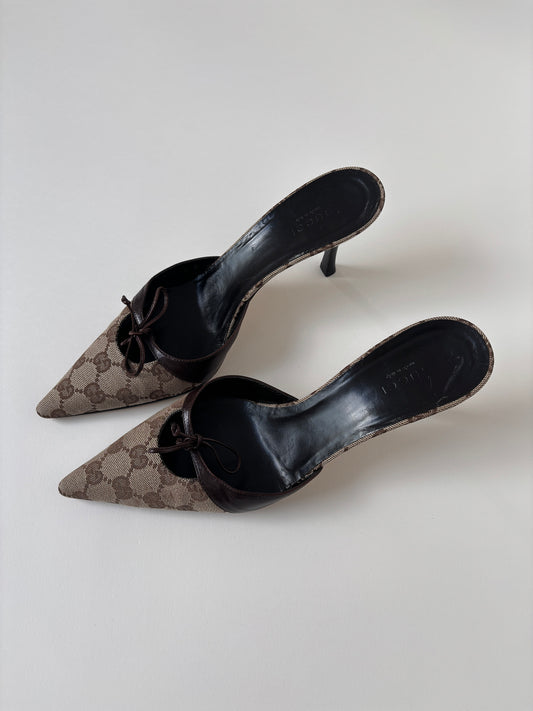 Gucci by Tom Ford 2000s brown bow monogram mules (EU 38 / US 7.5)