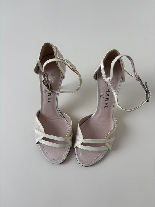 Chanel 1990s by Karl Lagerfeld beige floral roses sandal heels UNWORN (EU 41 / US 10.5)