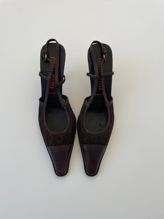 Miu Miu 2000s dark brown western crochet mesh slingbacks (EU 40 / US 9.5)