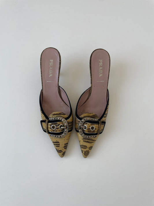 Prada 2000s python western buckle kitten heel mules (EU 38 / US 7.5)