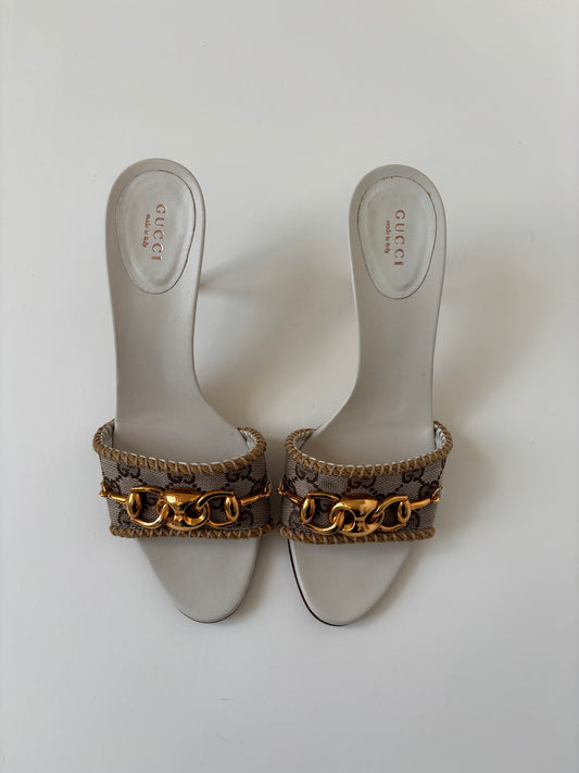 Gucci by Tom Ford 2000s beige monogram chain sandals (EU 39 / US 8.5)
