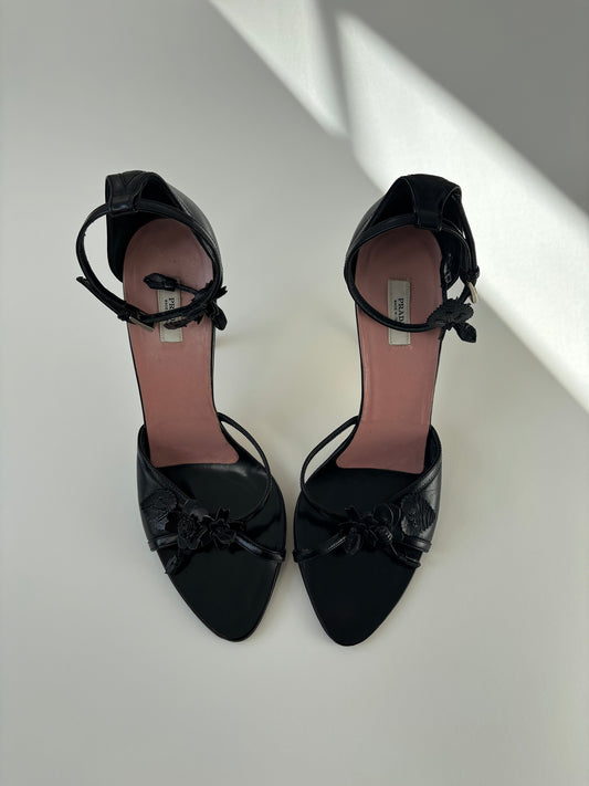 Prada 2000s black floral heels (EU 39 / US 8.5)