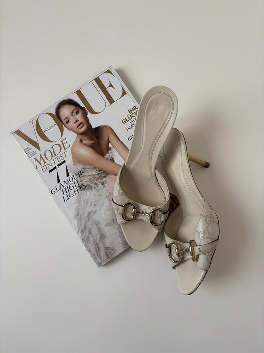 Gucci by Tom Ford 2000s cream white monogram horsebit sandals (EU 39,5 / US 9)