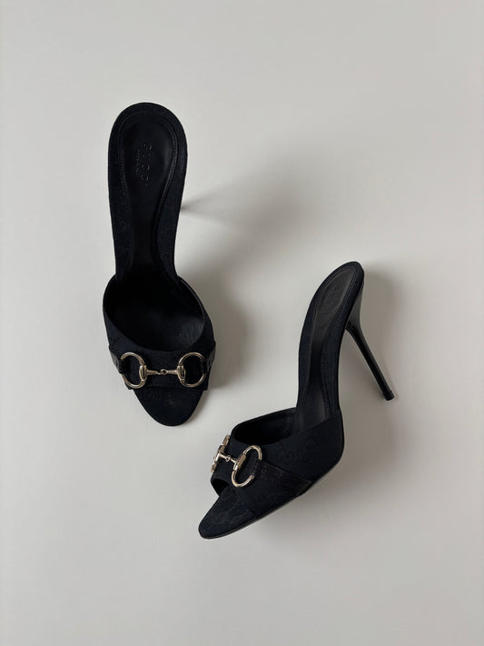 Gucci 2000s black horsebit monogram sandal heels (EU 40 / US 9.5)