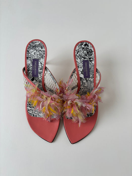 Emilio Pucci 2000s peach pink ruffle thong kitten heels (EU 38 / US 7.5)