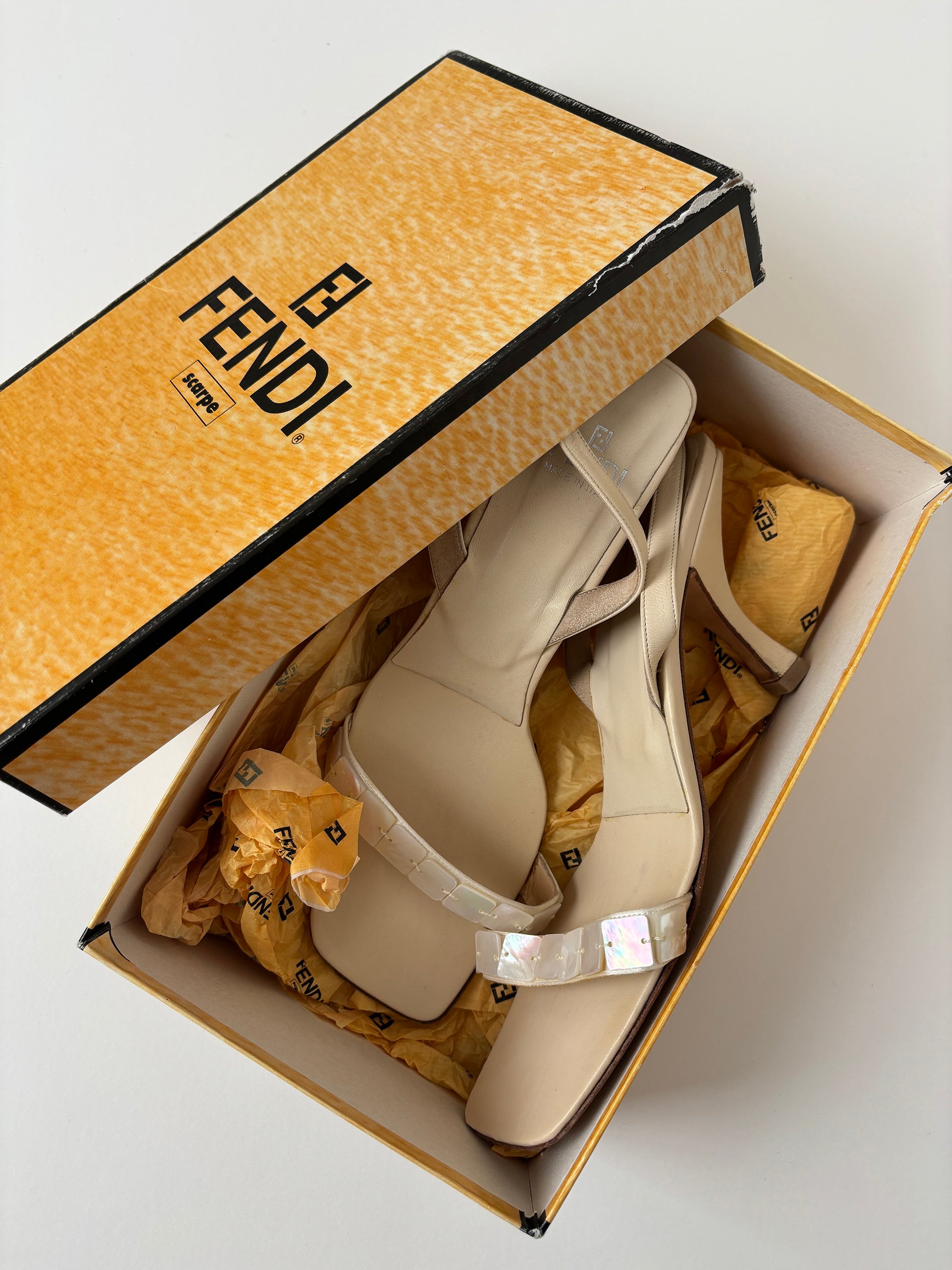Vintage 1990s Fendi rare mother of pearl heels.