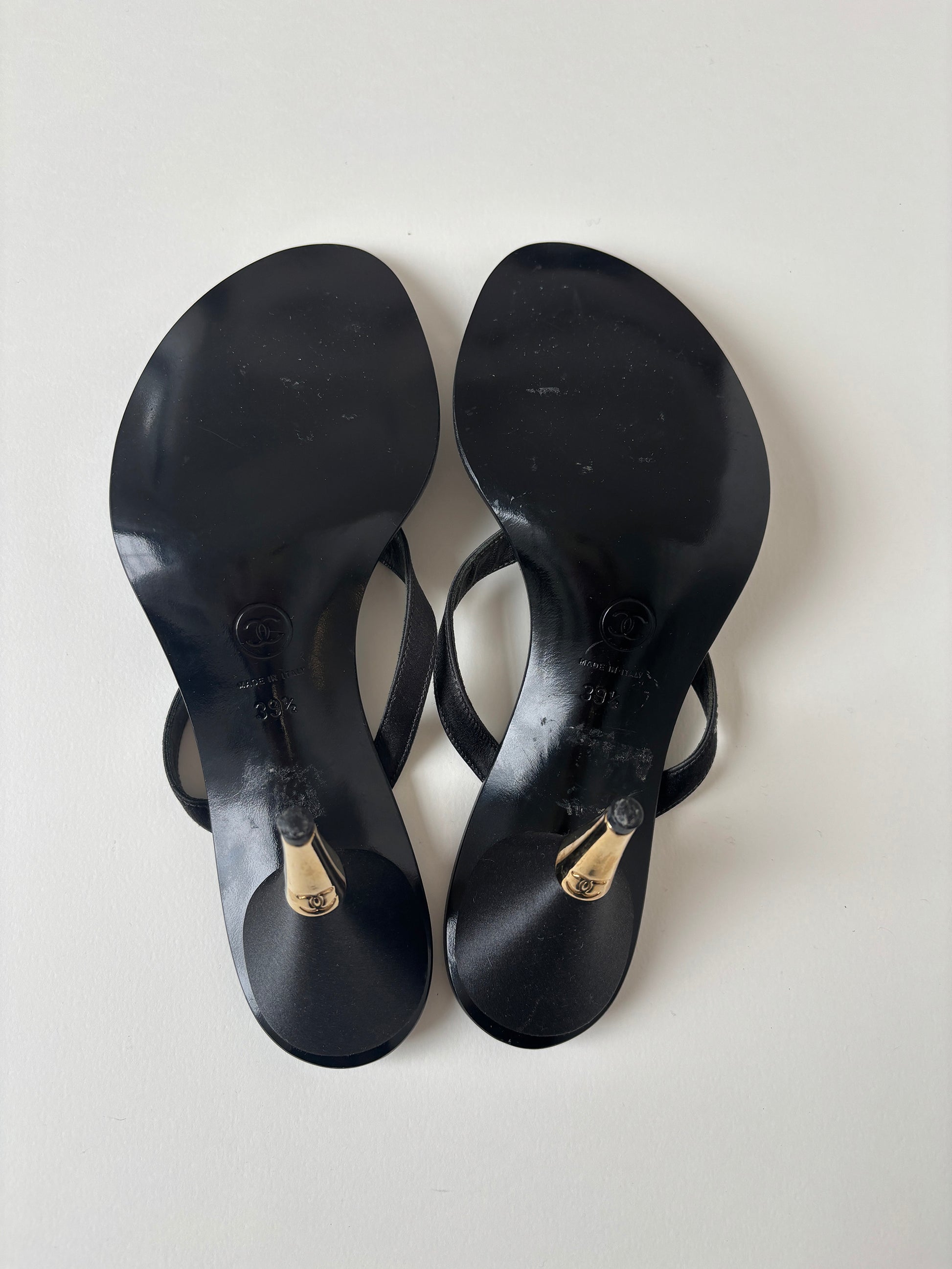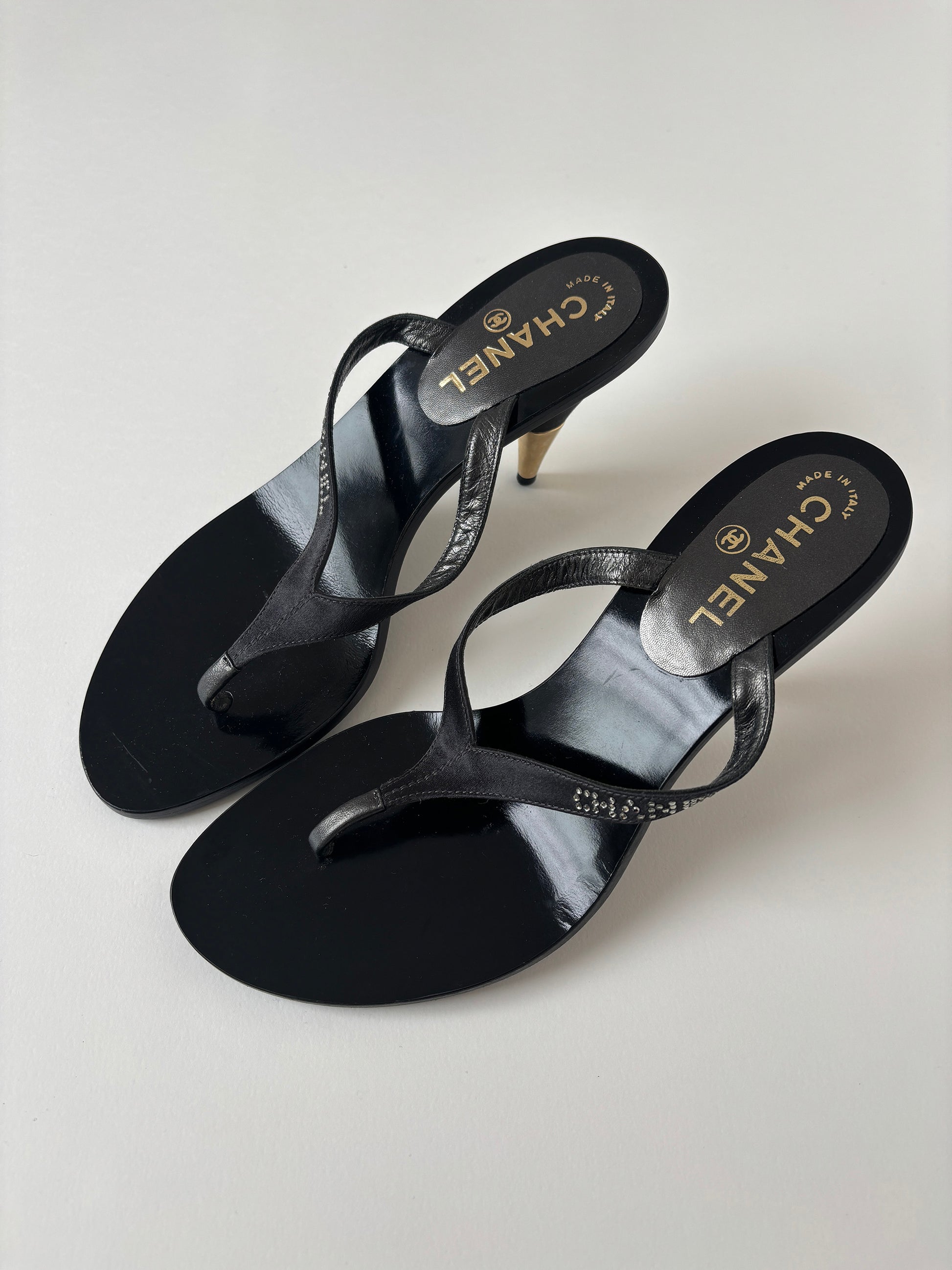 Chanel 2000s by Karl Lagerfeld black rhinestone thong kitten heels UNWORN (EU 39,5 / US 9)