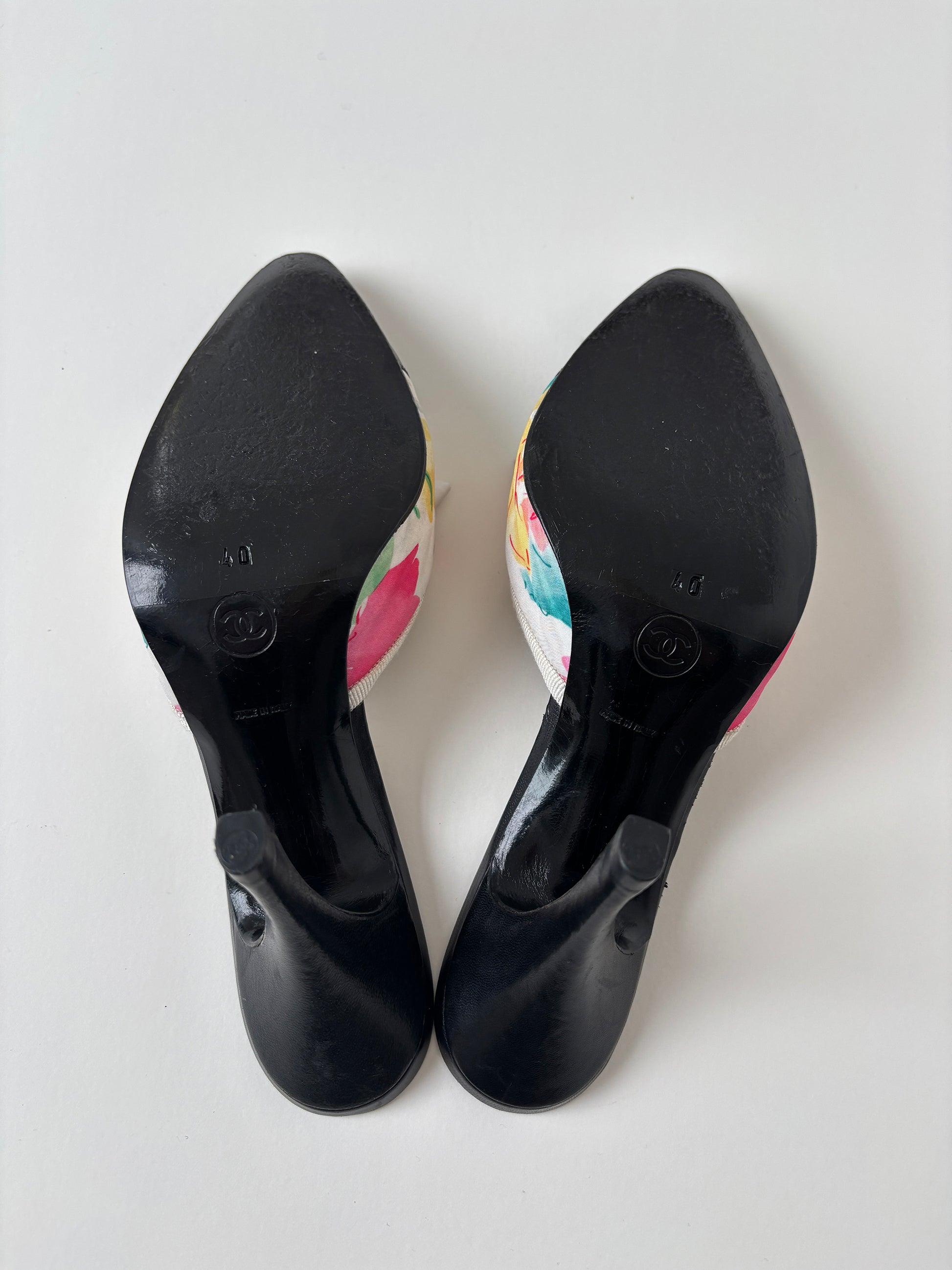 Chanel by Karl Lagerfeld 1990s floral bow logo mules (EU 40 / US 9.5)