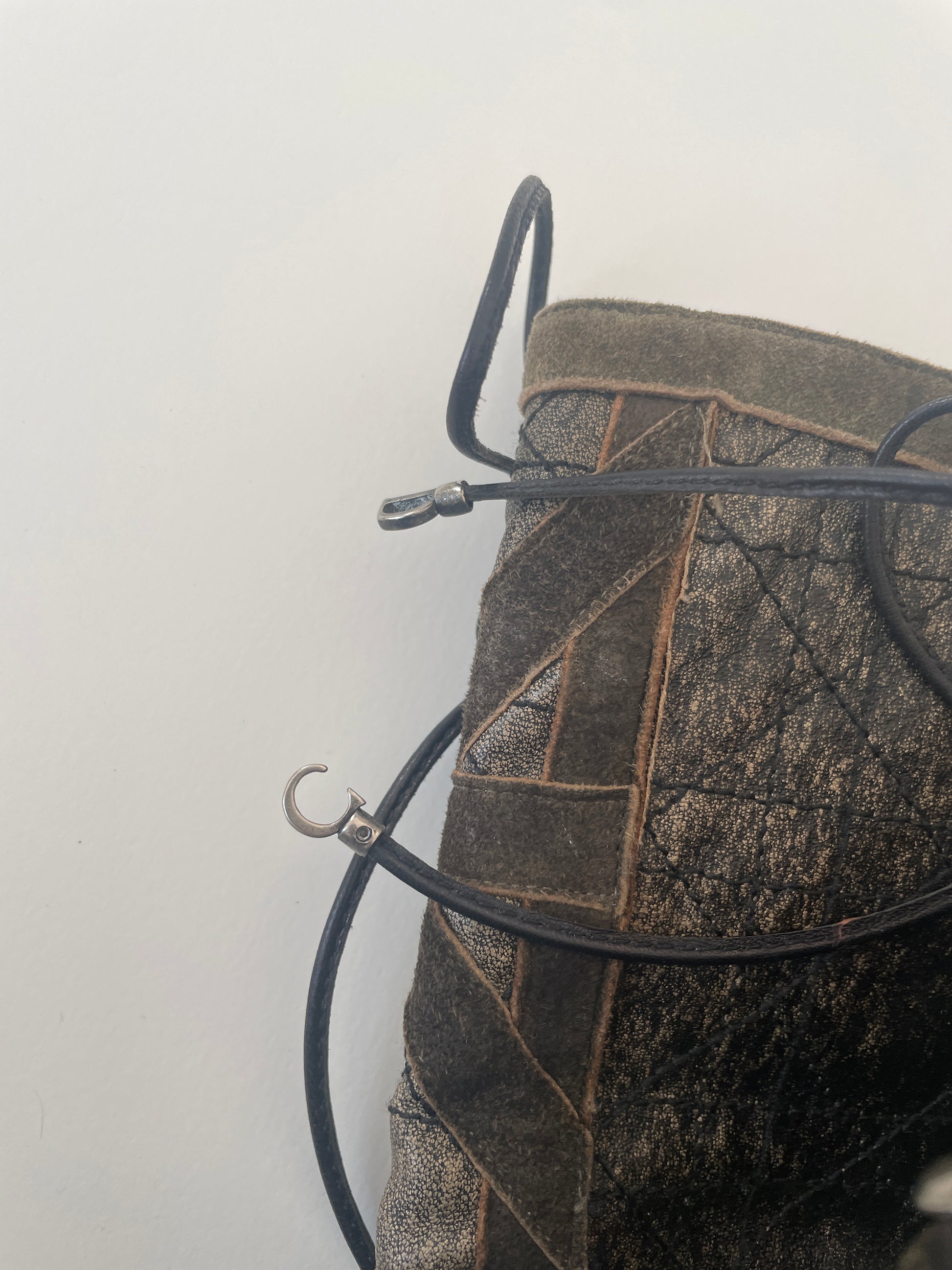 Vintage 2000s Christian Dior by Galliano distressed runway knee high lace boots with squared toe. Amazing details cute tiny CD metal charms. Very rare model