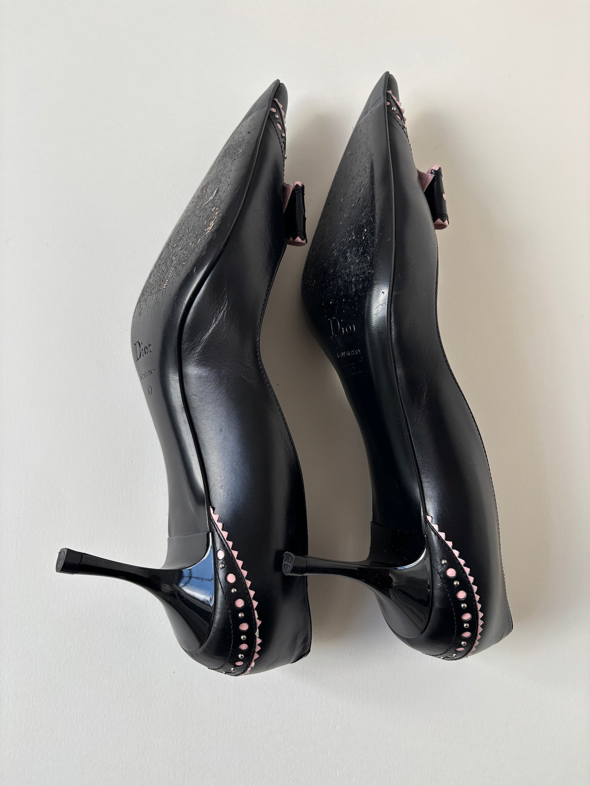 Christian Dior by John Galliano 2000s D Trick black pink bow kitten heels (EU 42 / US 11.5)