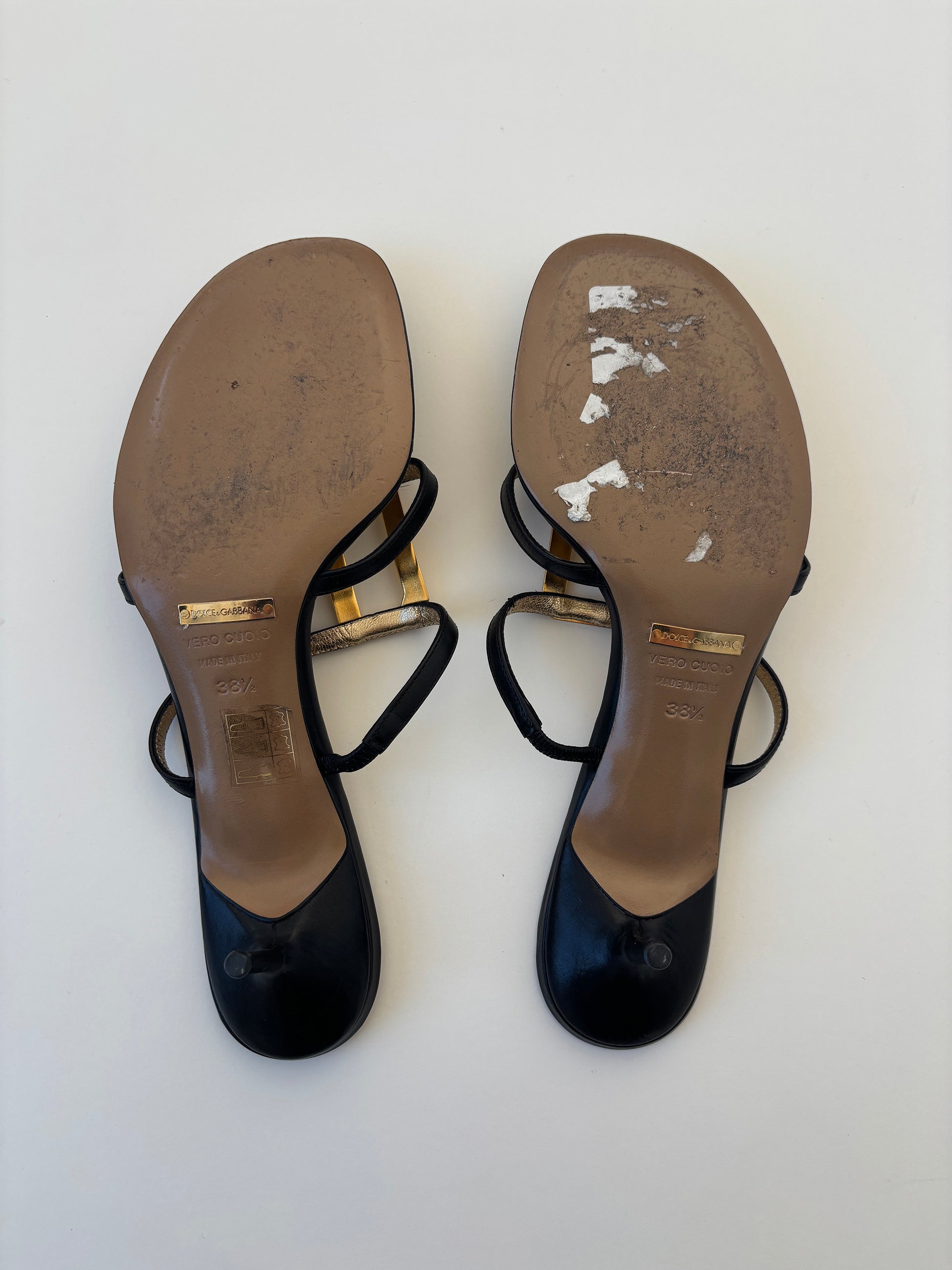 Dolce & Gabbana 2000s golden logo thong kitten heels (EU 38,5 / US 8)