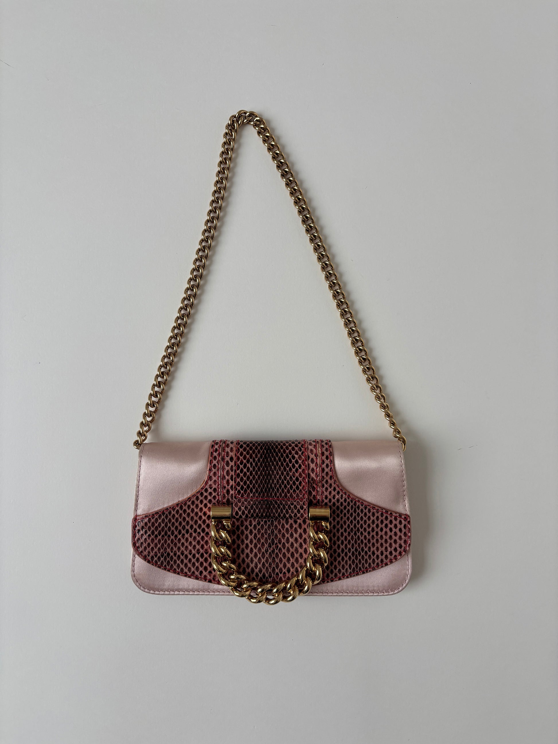 Dolce & Gabbana 2000s pink python mini O-Ring baguette bag