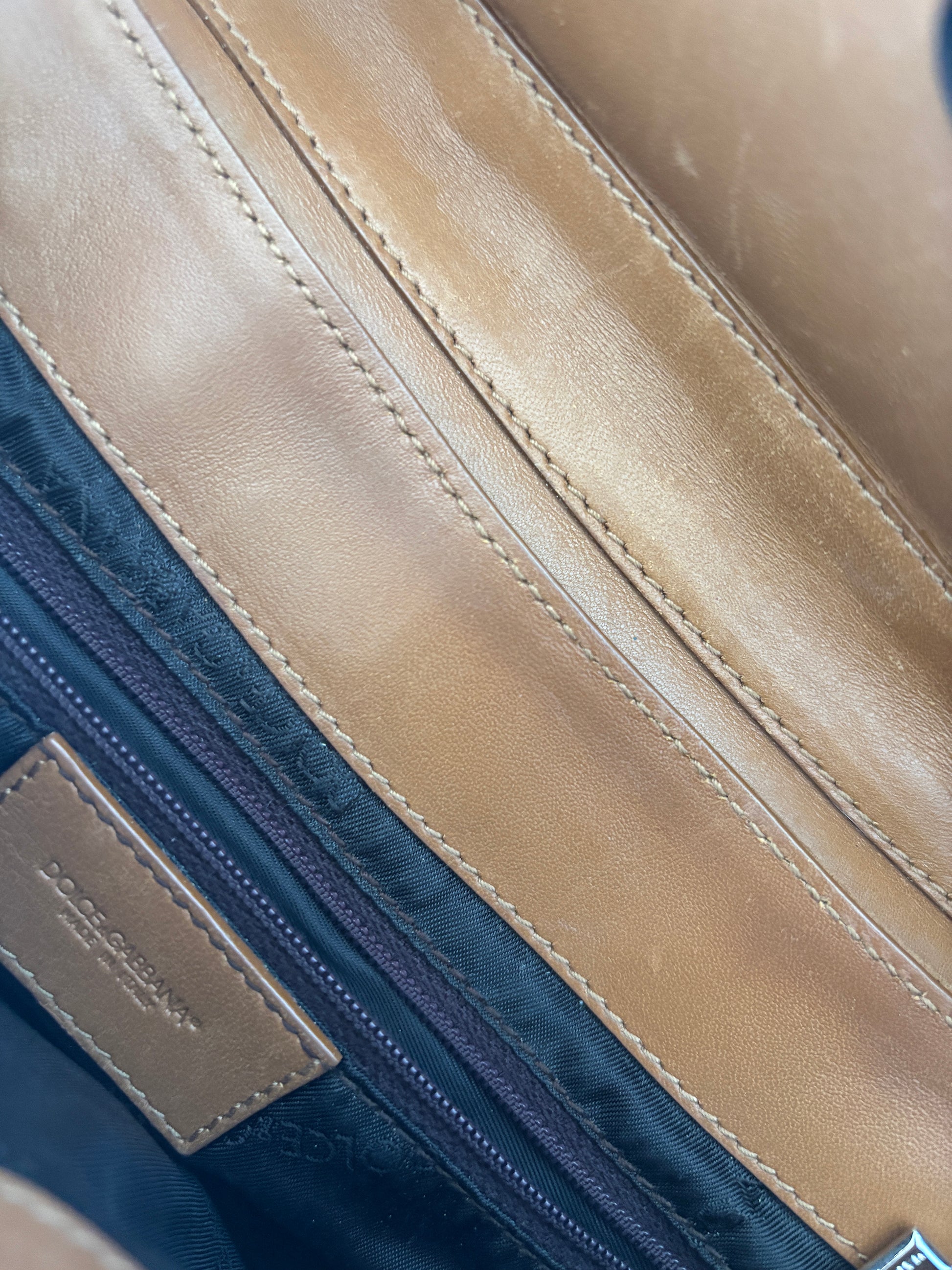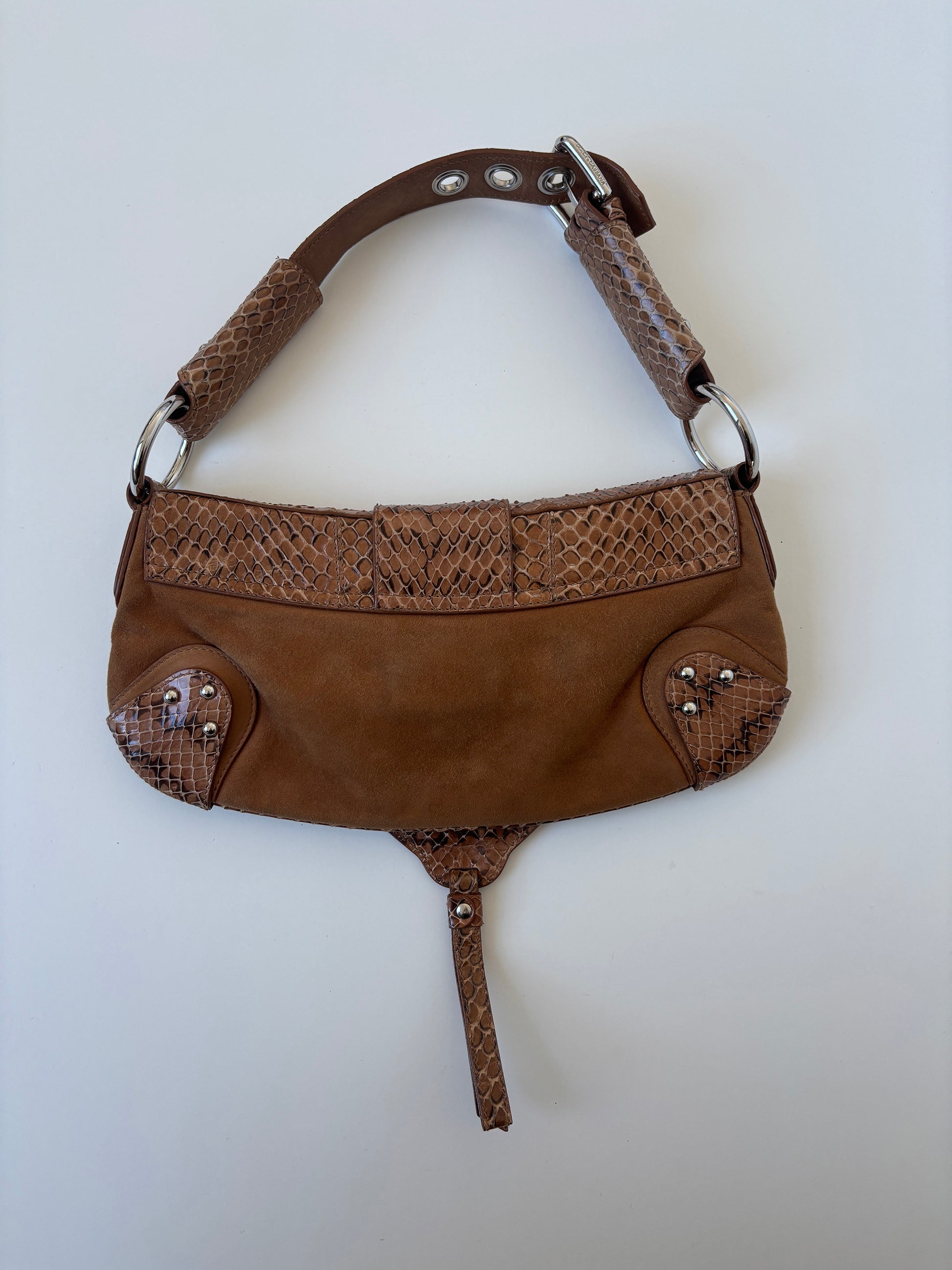 Dolce & Gabbana 2000s tan suede python D-Ring baguette bag
