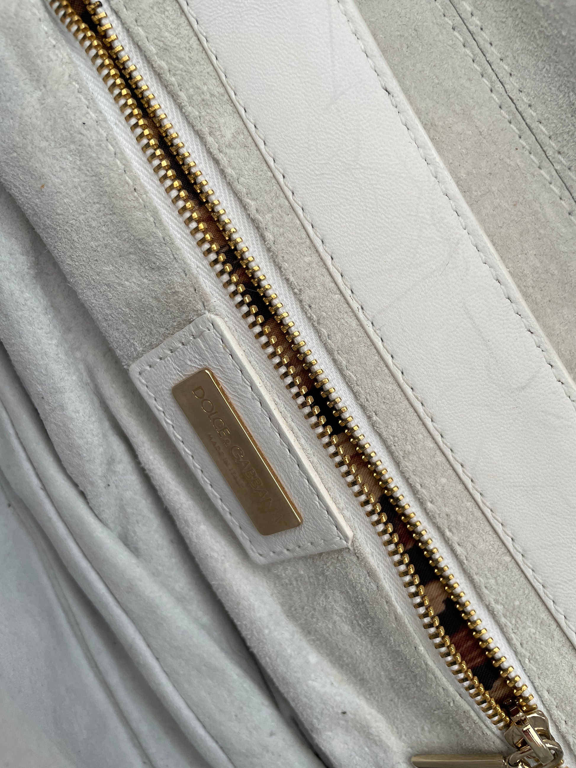 Vintage Dolce & Gabbana 2000s white python O-Ring baguette bag with golden metallic logo D&G strap.