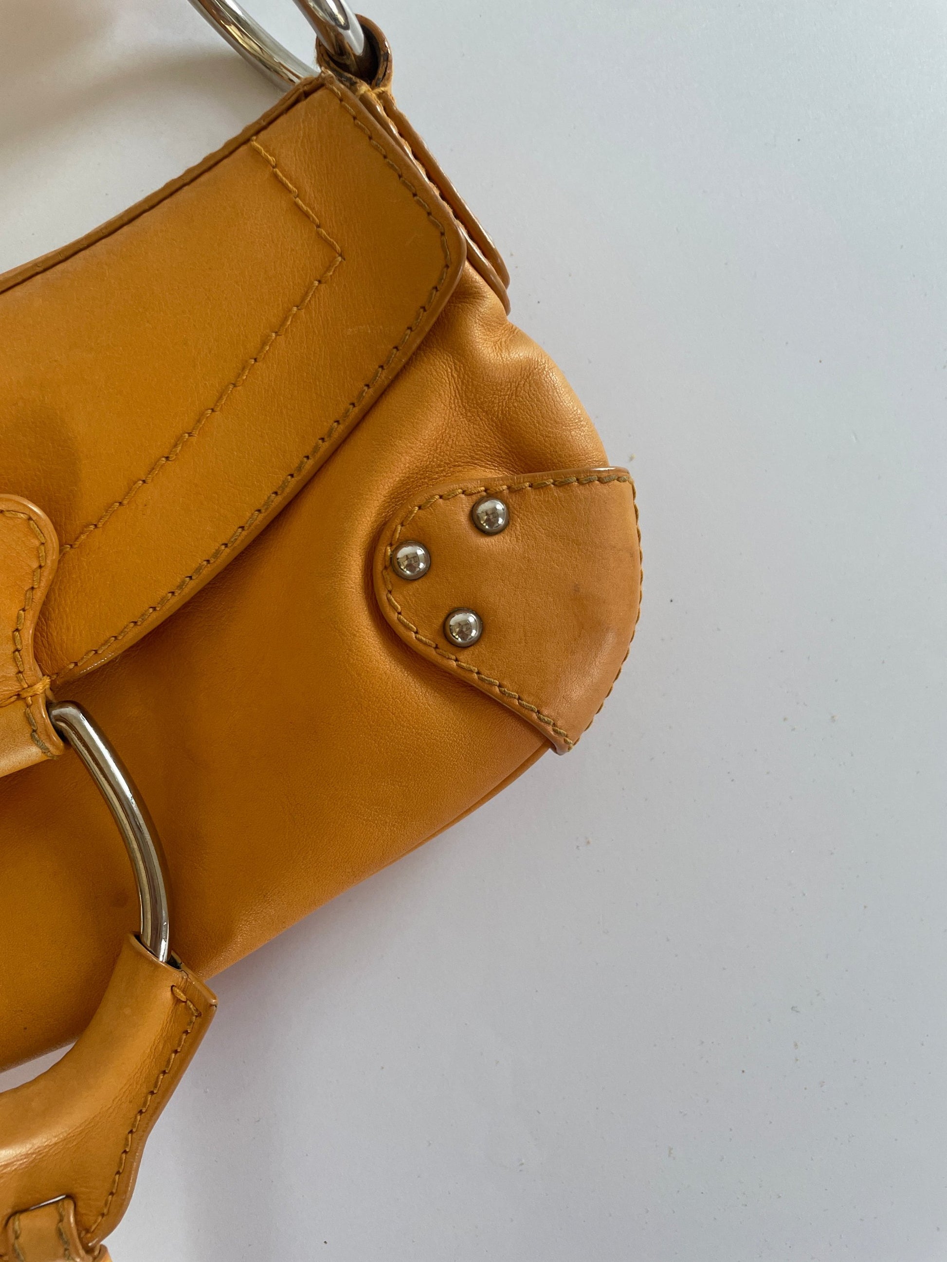 Vintage Dolce & Gabbana D-Ring baguette bag with silver eyelet details. Iconic cheetah print lining.