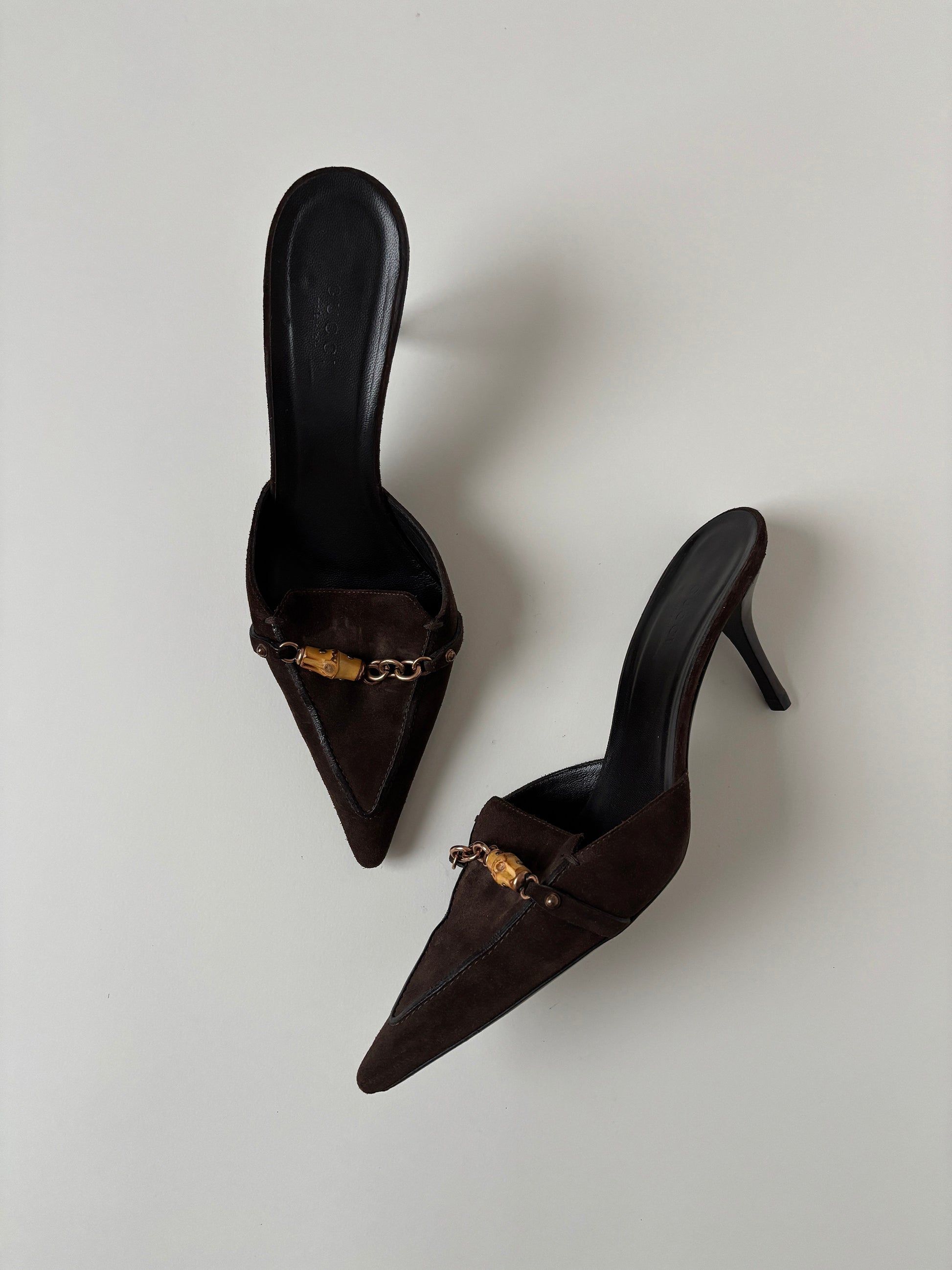 Gucci by Tom Ford 2000s dark brown suede bamboo mules (EU 39 / US 8.5)