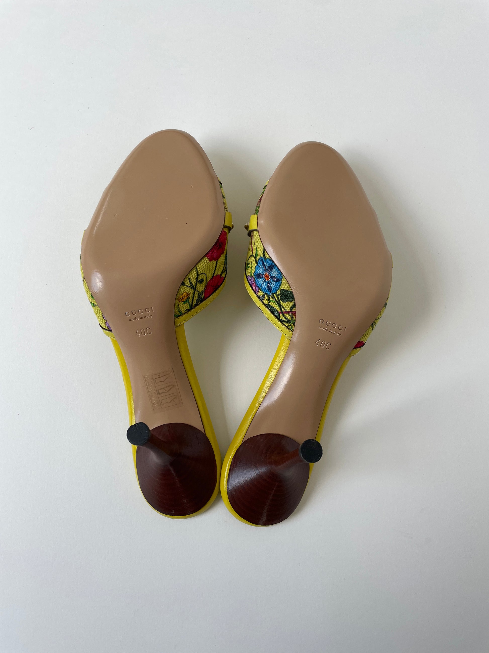 Gucci by Tom Ford 2000s yellow flora bamboo horsebit heels UNWORN (EU 40,5 / US 10)