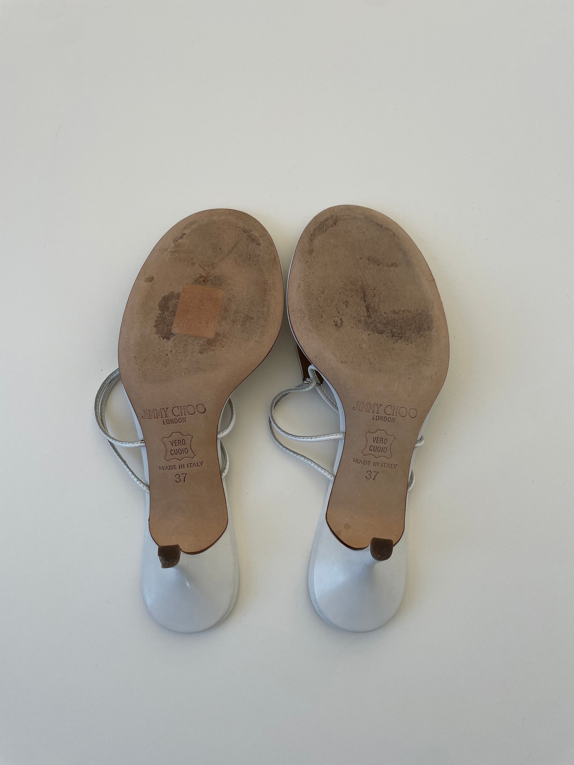 Jimmy Choo 2000s white rhinestone thong kitten heels (EU 37 / US 6.5)