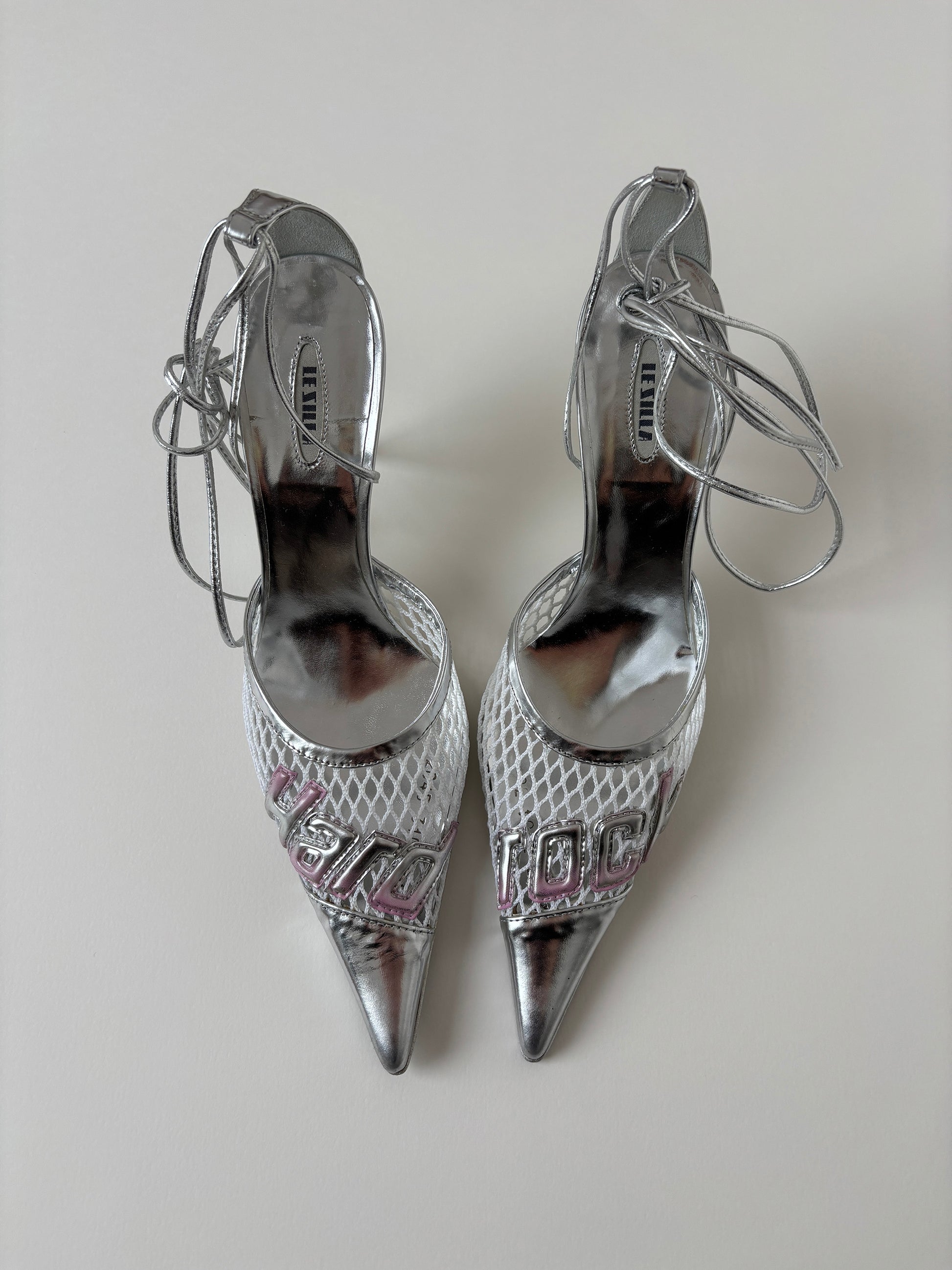 Le Silla 2000s silver white mesh hard rock kitten heels UNWORN (EU 36 / US 5.5)