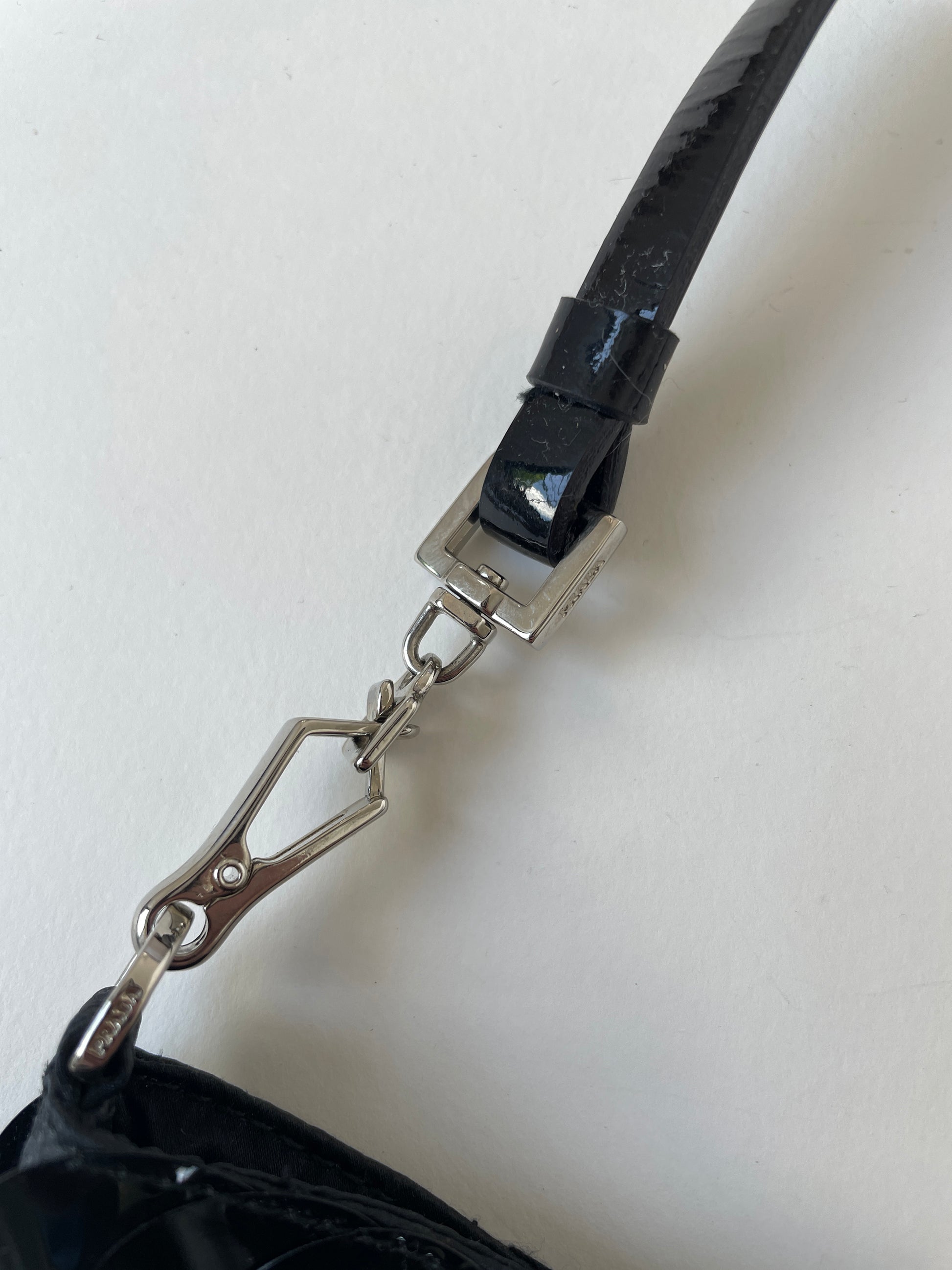Vintage Prada 1990s black satin mini hobo bag. Very iconic piece.