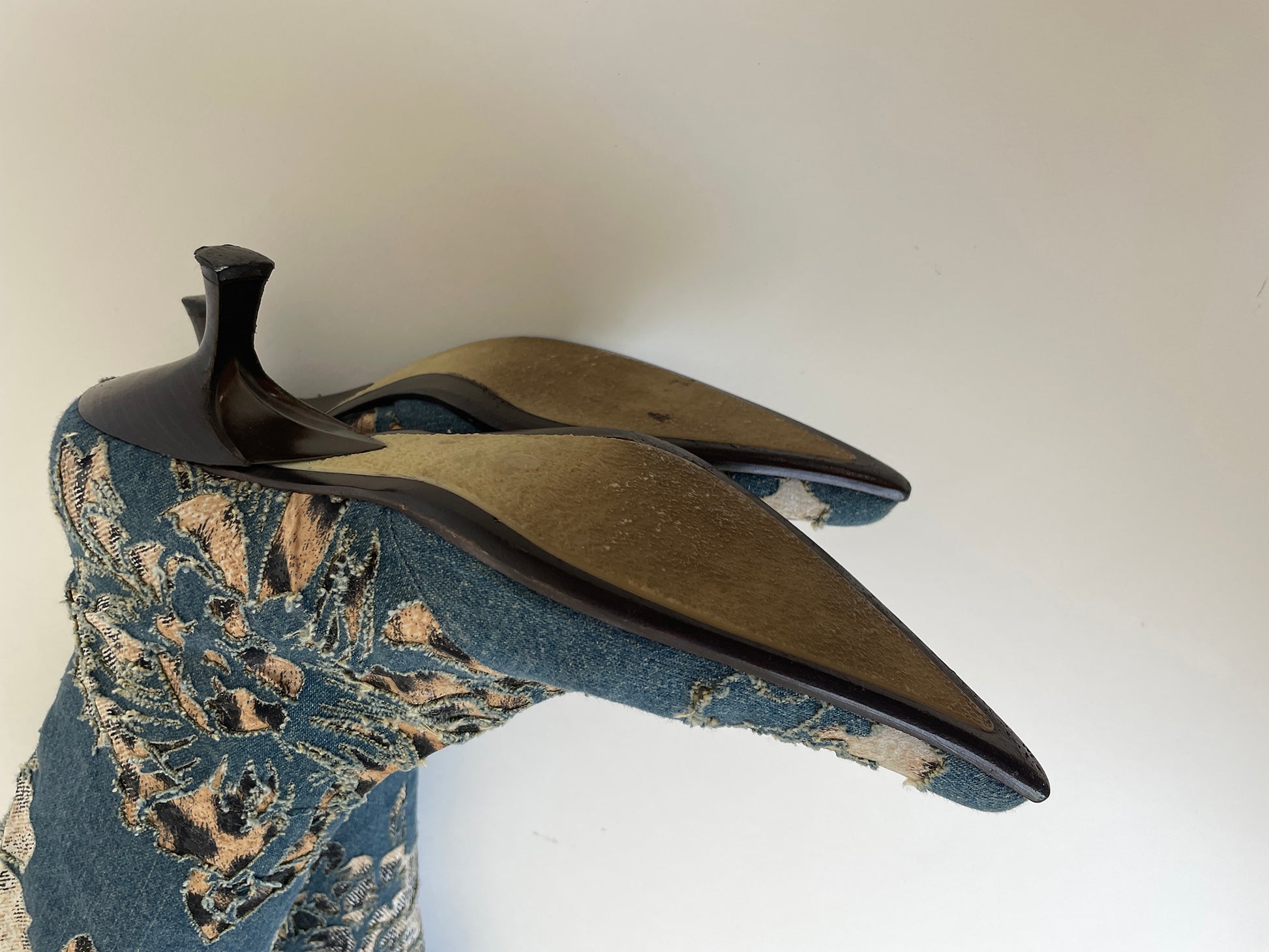 Roberto Cavalli S/S 2002 iconic denim floral laser cutout kitten heel boots (EU 37/ US 6.5)