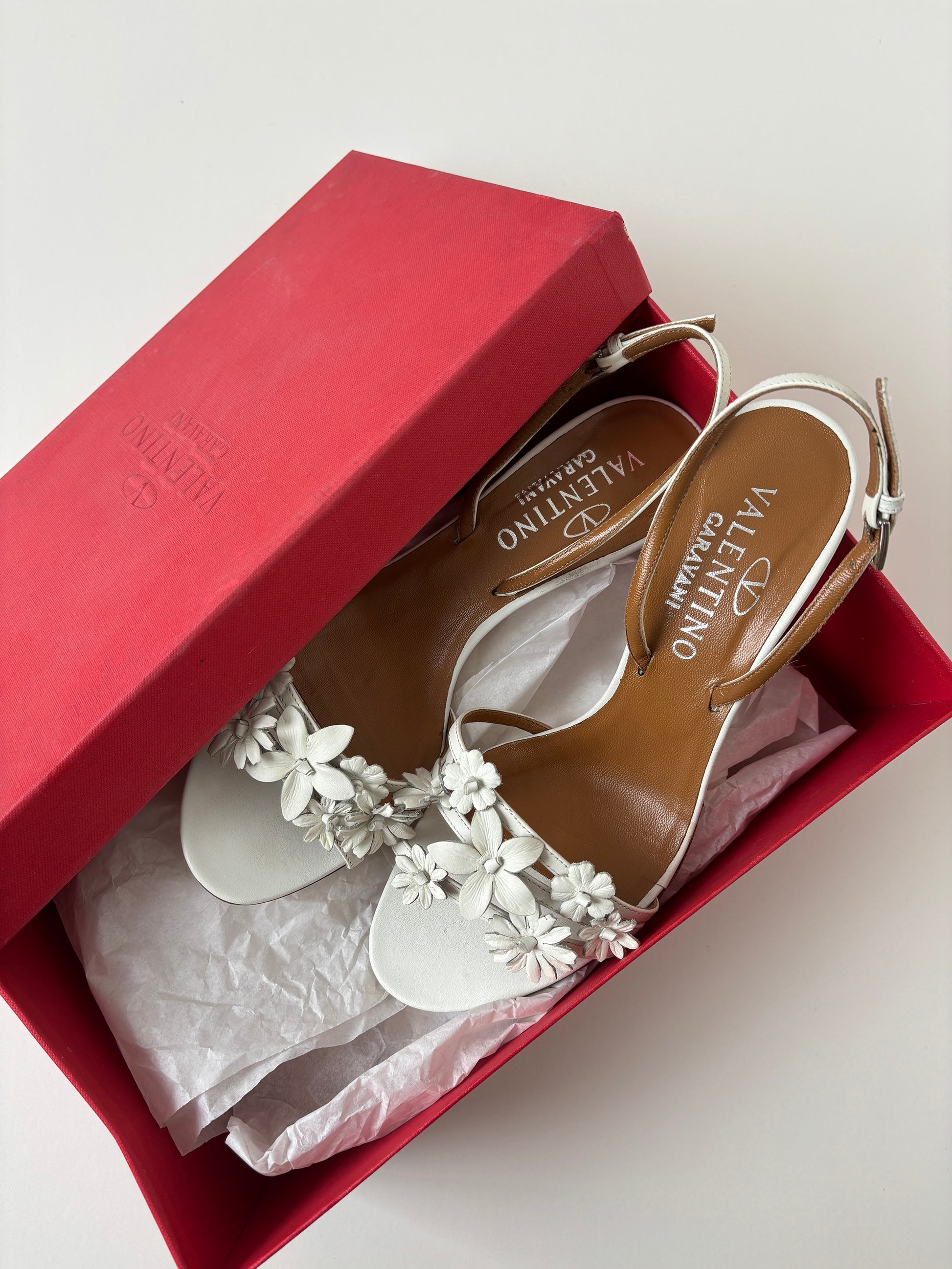 Valentino Garavani 2000s white flower application sandal heels (EU 37,5 / US 7)