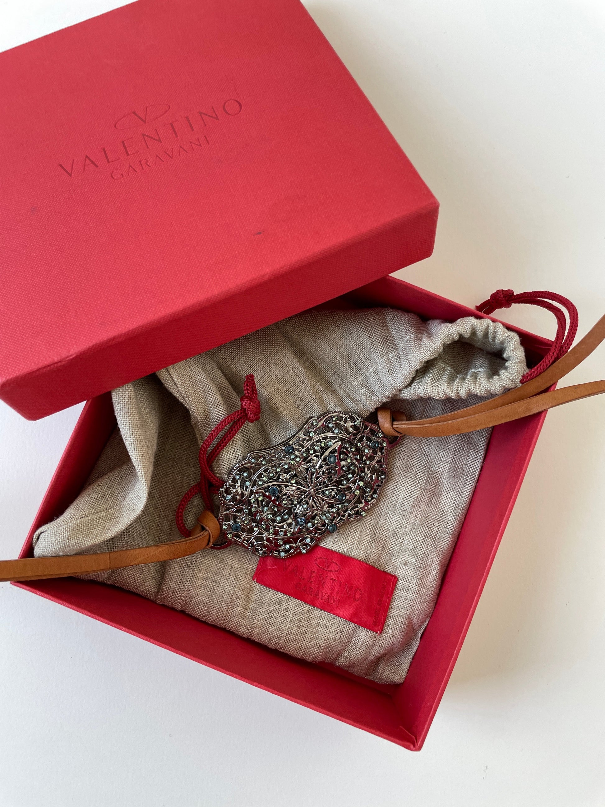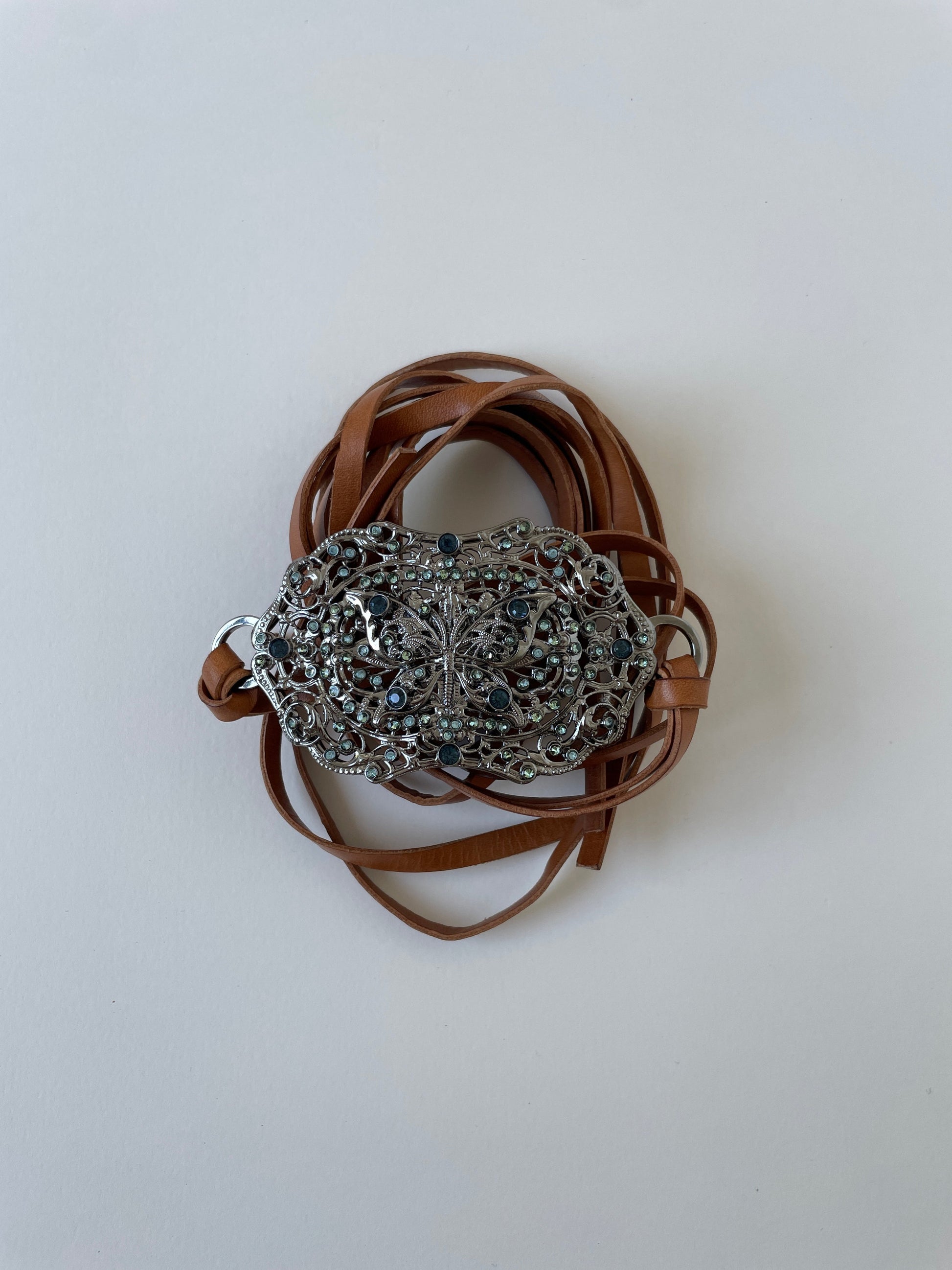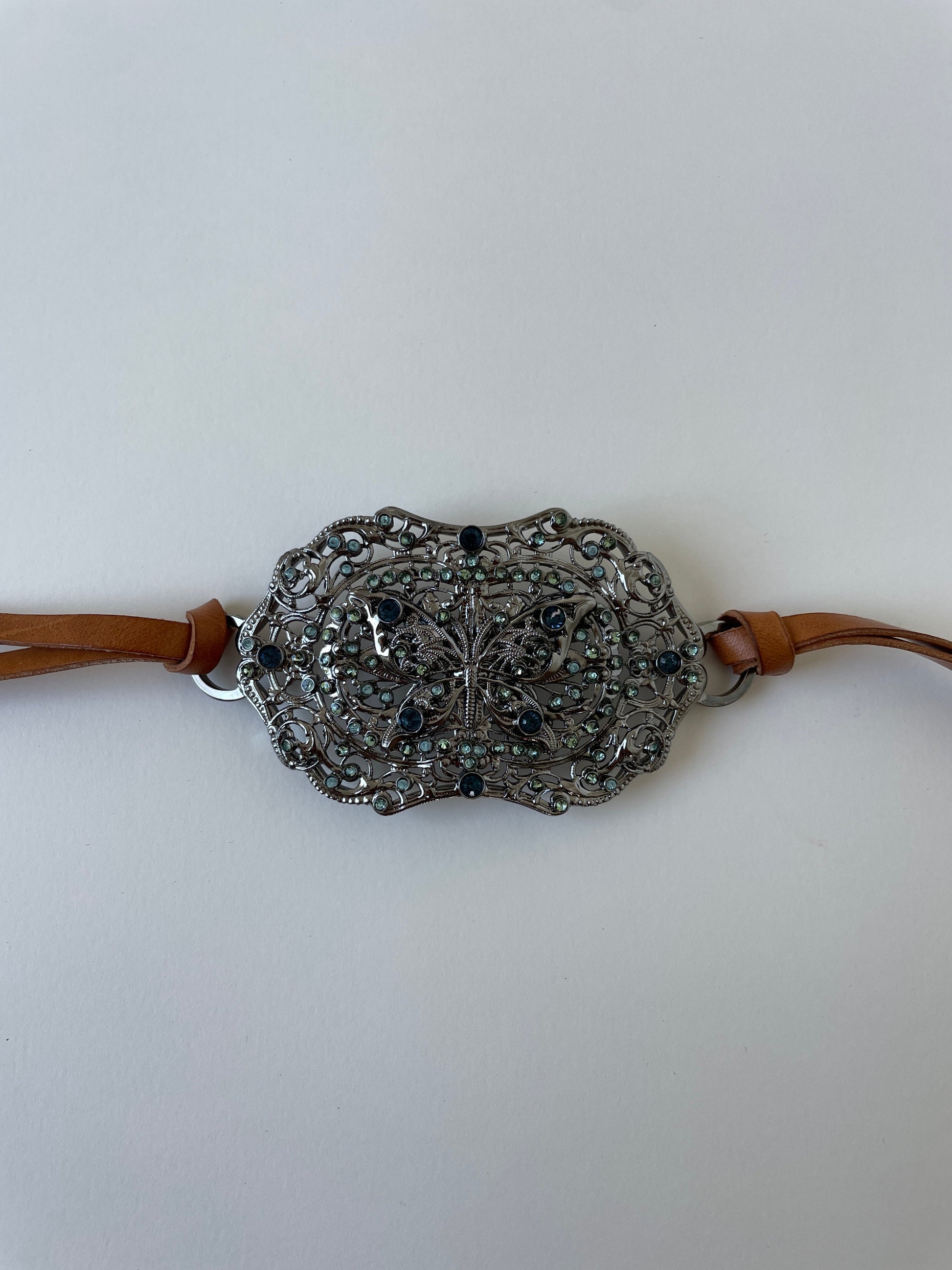 Vintage Valentino Garavani S/S 2004 strappy butterfly blue rhinestone belt with adjustable leather band in UNWORN condition