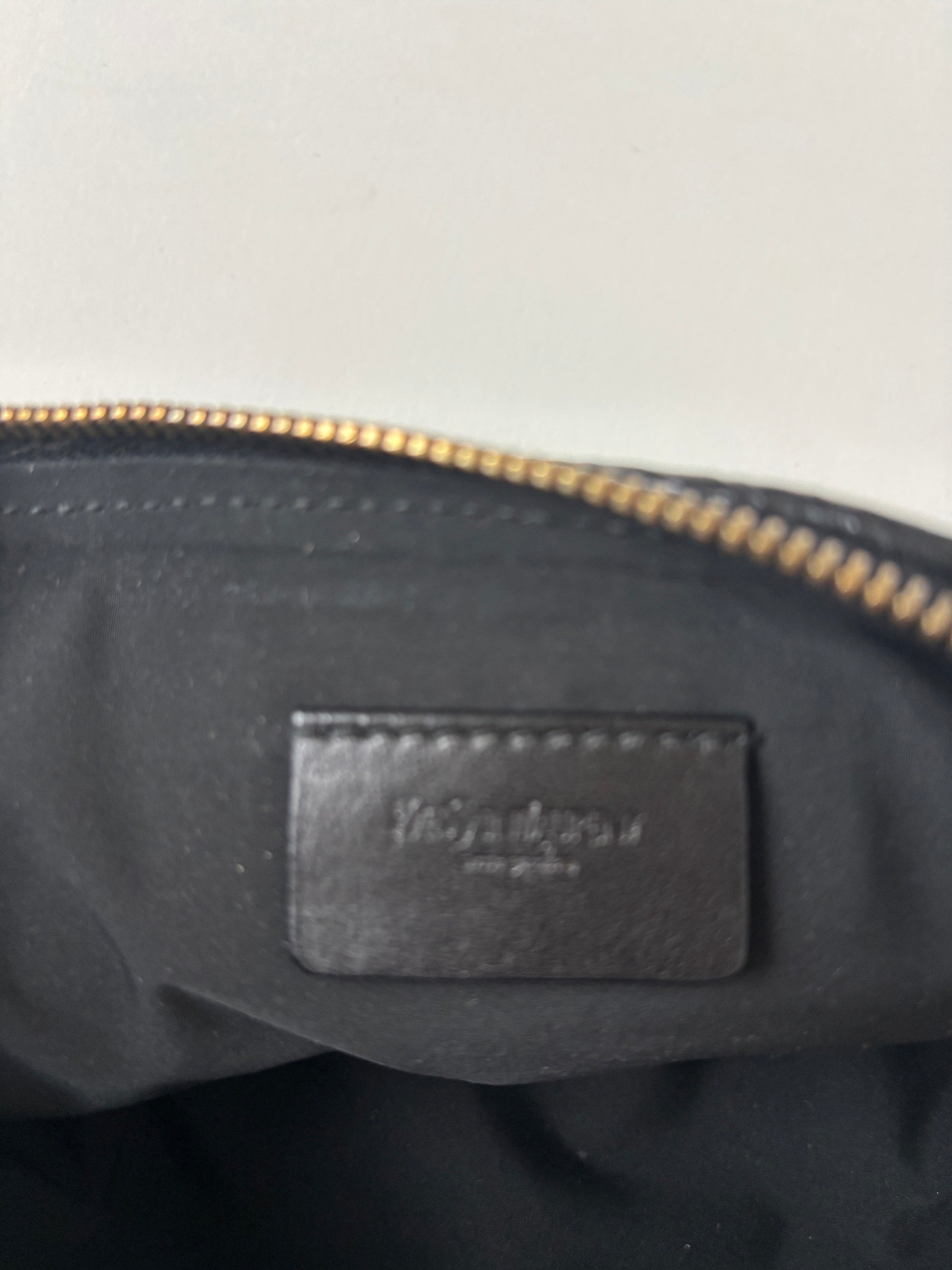Vintage YSL by Tom Ford 2000s mini pochette with golden postcard print.